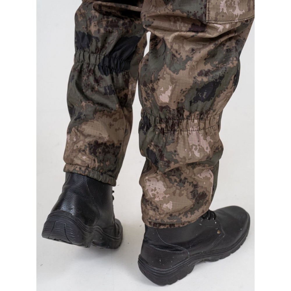 - Брюки: ткань RipStop (65% полиэстер, 35% хлопок), известная своей прочностью и стойкостью к повреждениям.
