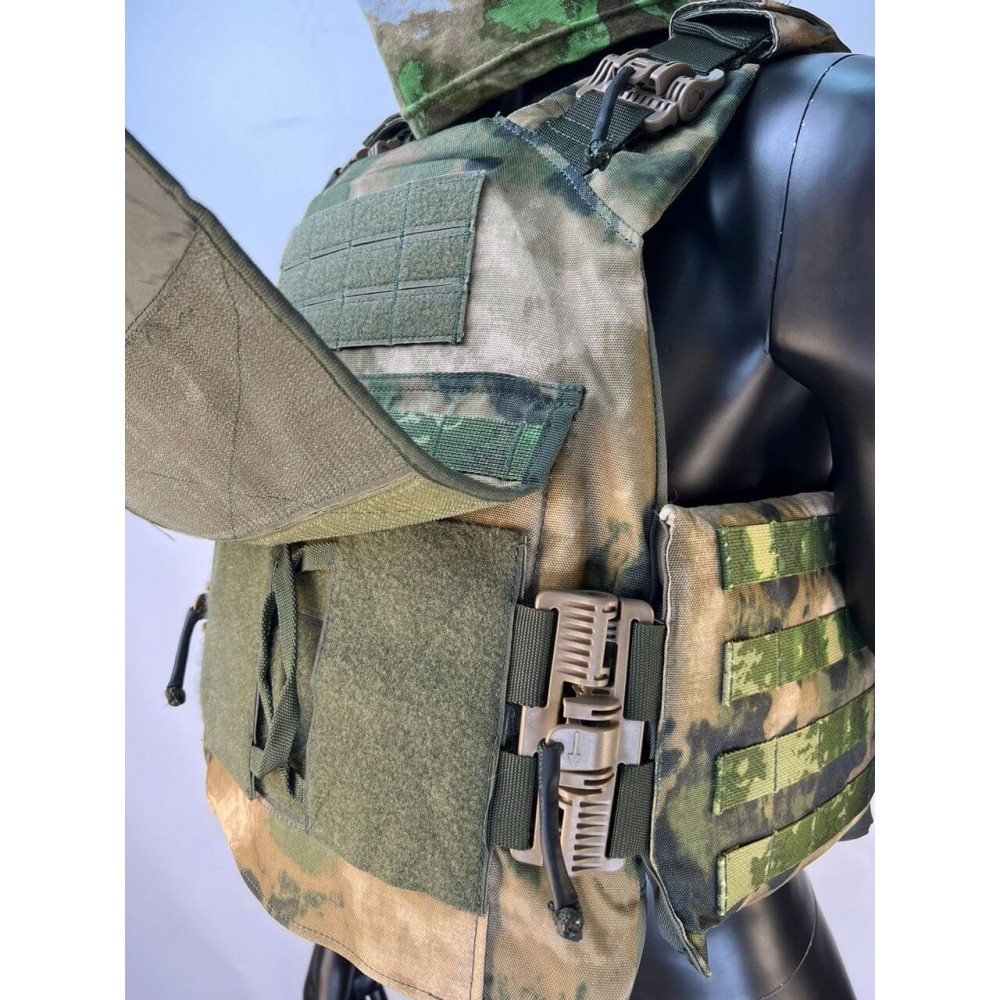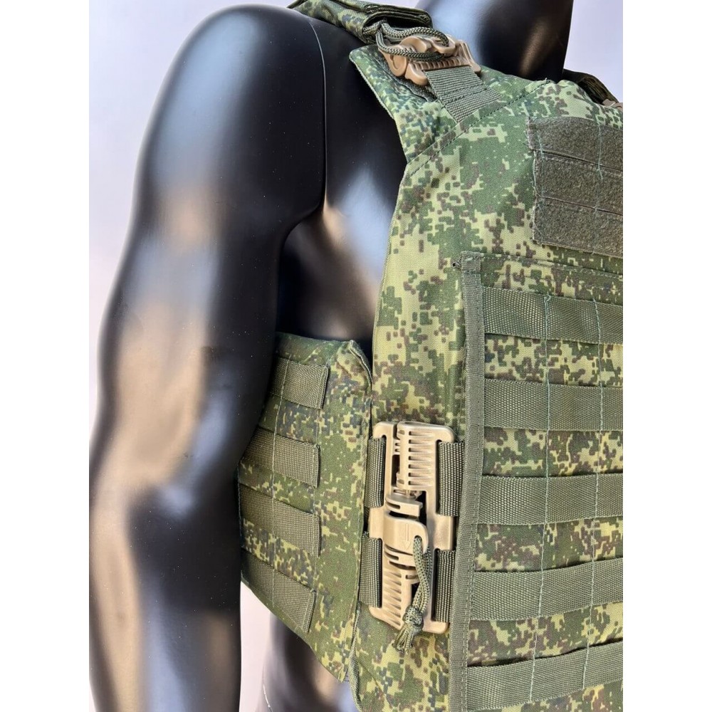 - Регулировка: Бронежилет имеет регулируемую по высоте и по объему систему, позволяя настраивать его под индивидуальные параметры носителя. Быстросъемные фиксаторы обеспечивают быстрое снятие бронежилета.