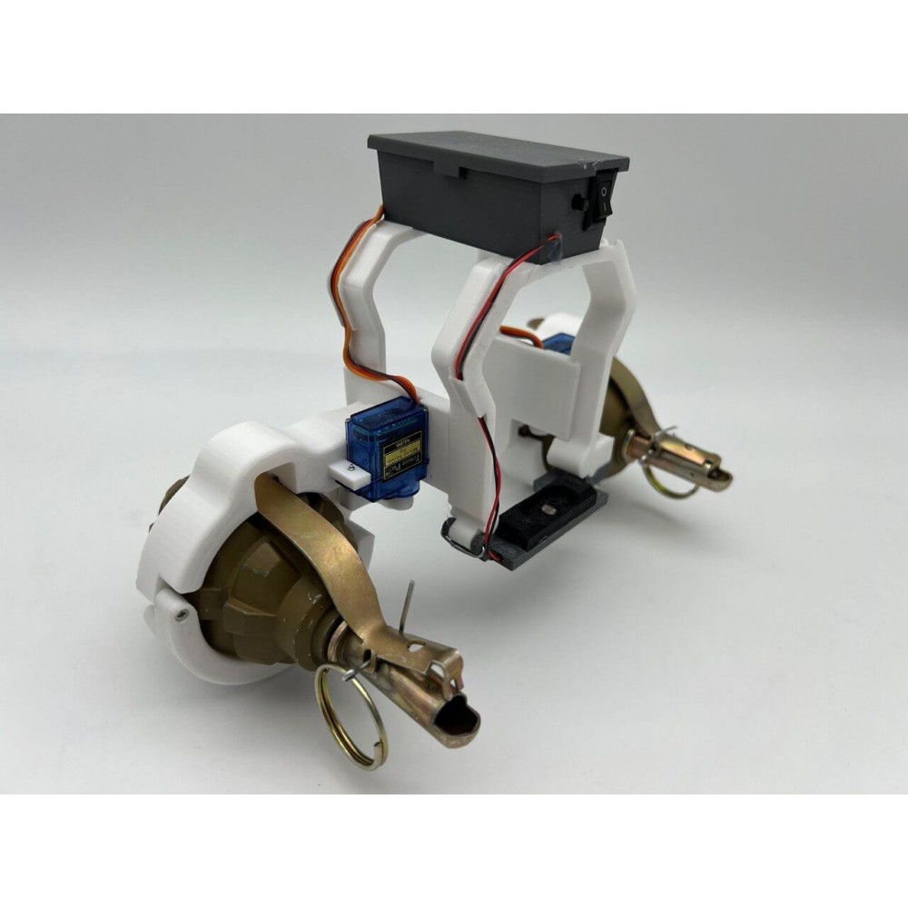 - Сервоприводы и аккумулятор: Включает 2 сервопривода для плавного и точного управления сбросом. Для работы системы используется аккумулятор ёмкостью 900mAh.