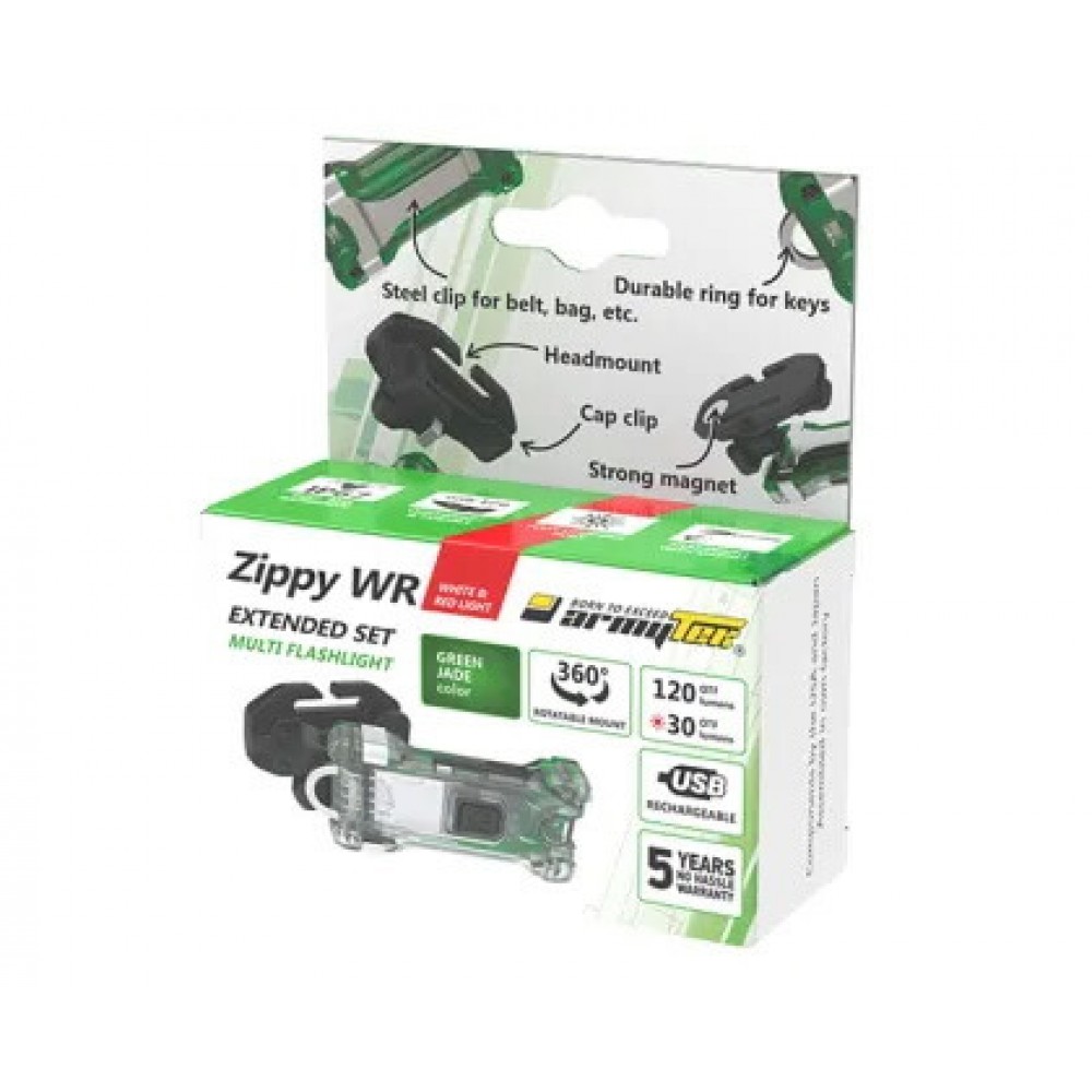 Armytek Zippy Extended Set WR (Green Jade) представляет собой надежный и универсальный источник света, который можно использовать во многих ситуациях, включая активный отдых на природе, работу или повседневные задачи.