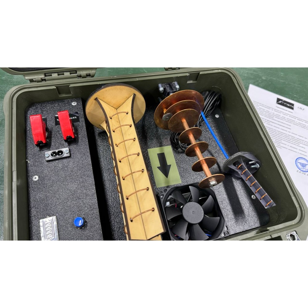 Подавитель БПЛА «Гроза 5.8» представляет собой направленное устройство радиоэлектронной борьбы, предназначенное для нейтрализации коммерческих дронов таких производителей, как DJI и Autel и др.. Он выполнен в виде герметичного и ударопрочного кейса.