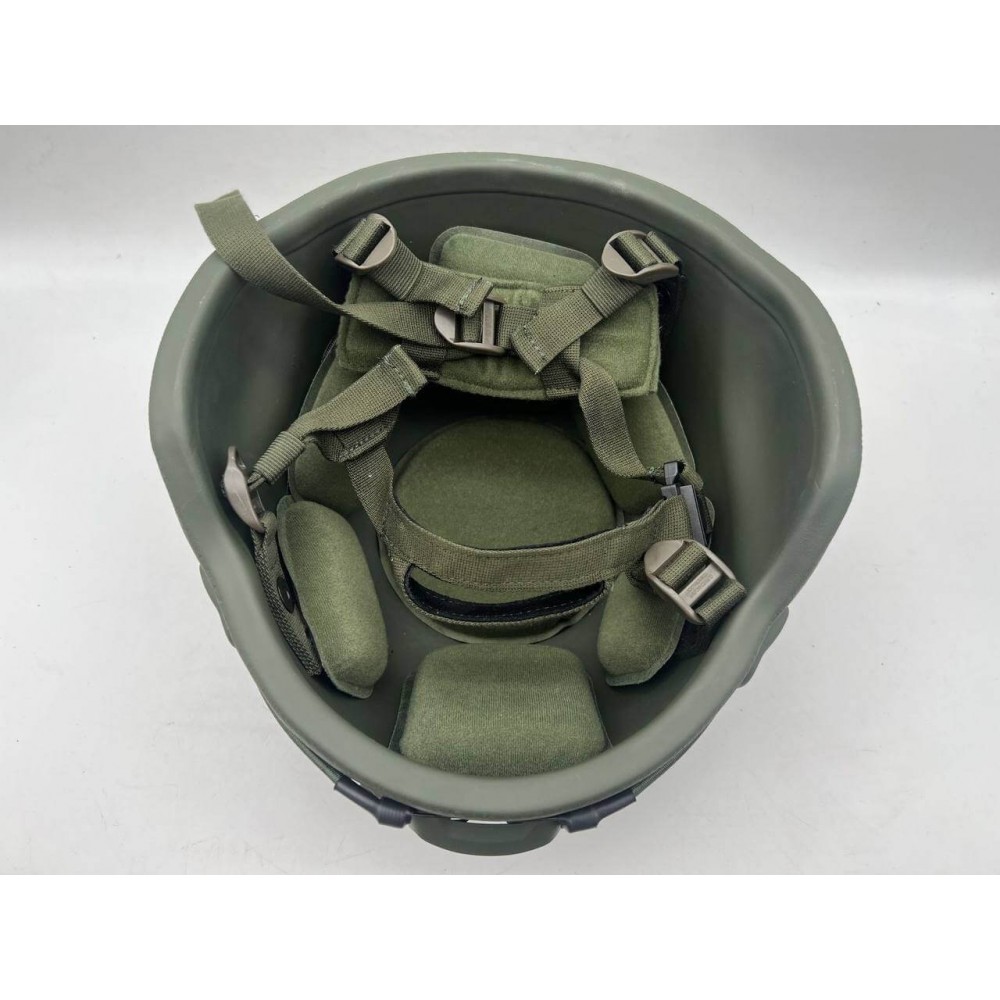 Броня: композит из слоев СВМПЭ и арамидных волокон. Шлем оснащен рельсами под дополнительное снаряжение, креплением для приборов ночного видения, фонарей, маяков.