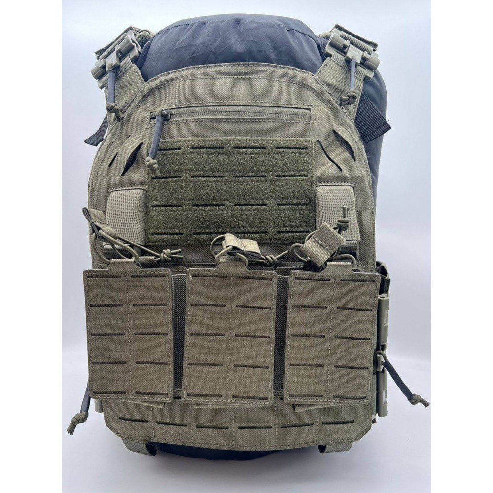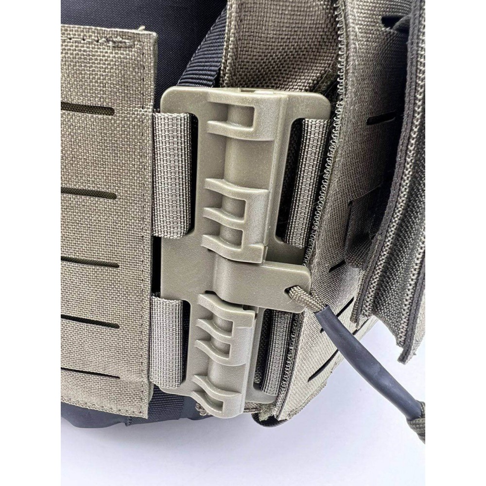 - Жилет разработан для обеспечения низкопрофильной, легкой интеграции с совместимой с MOLLE передачей.